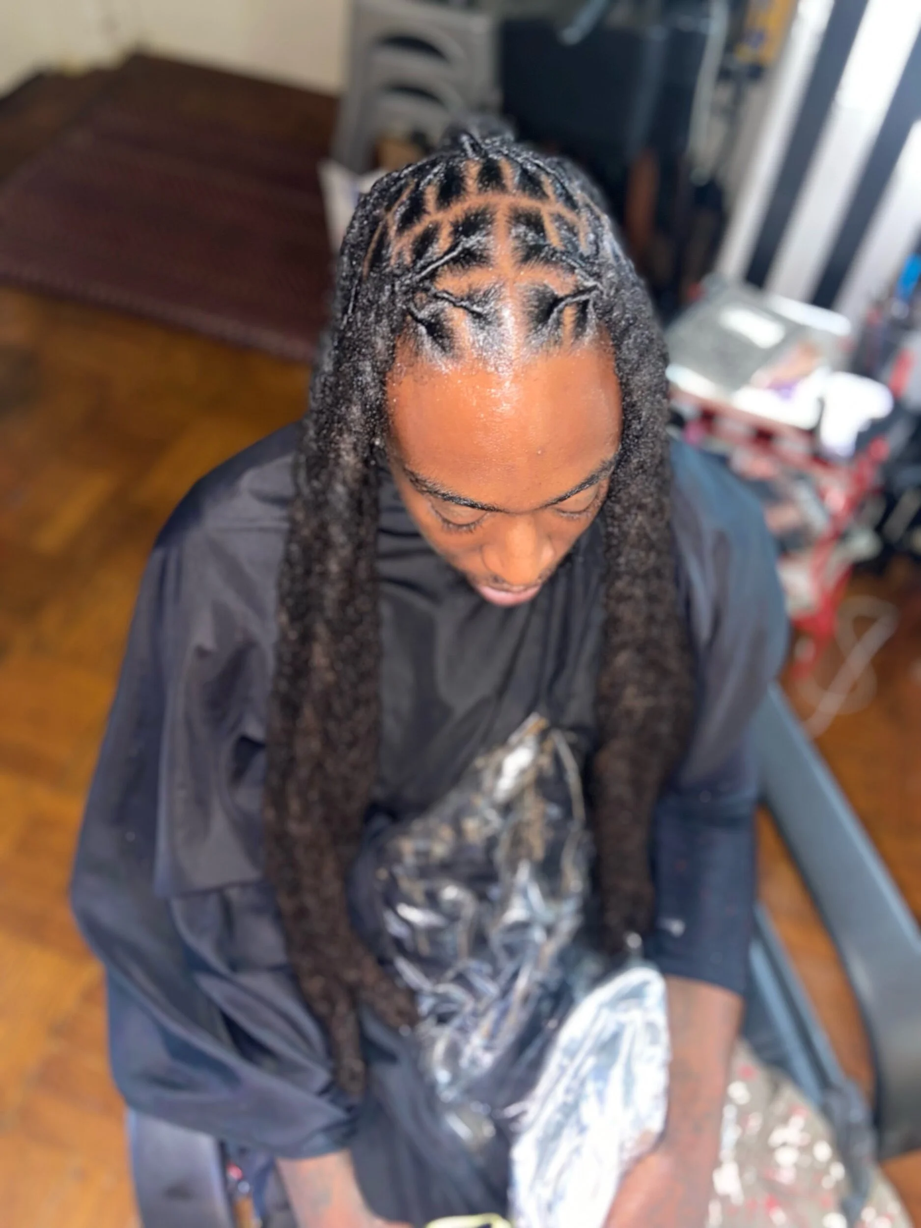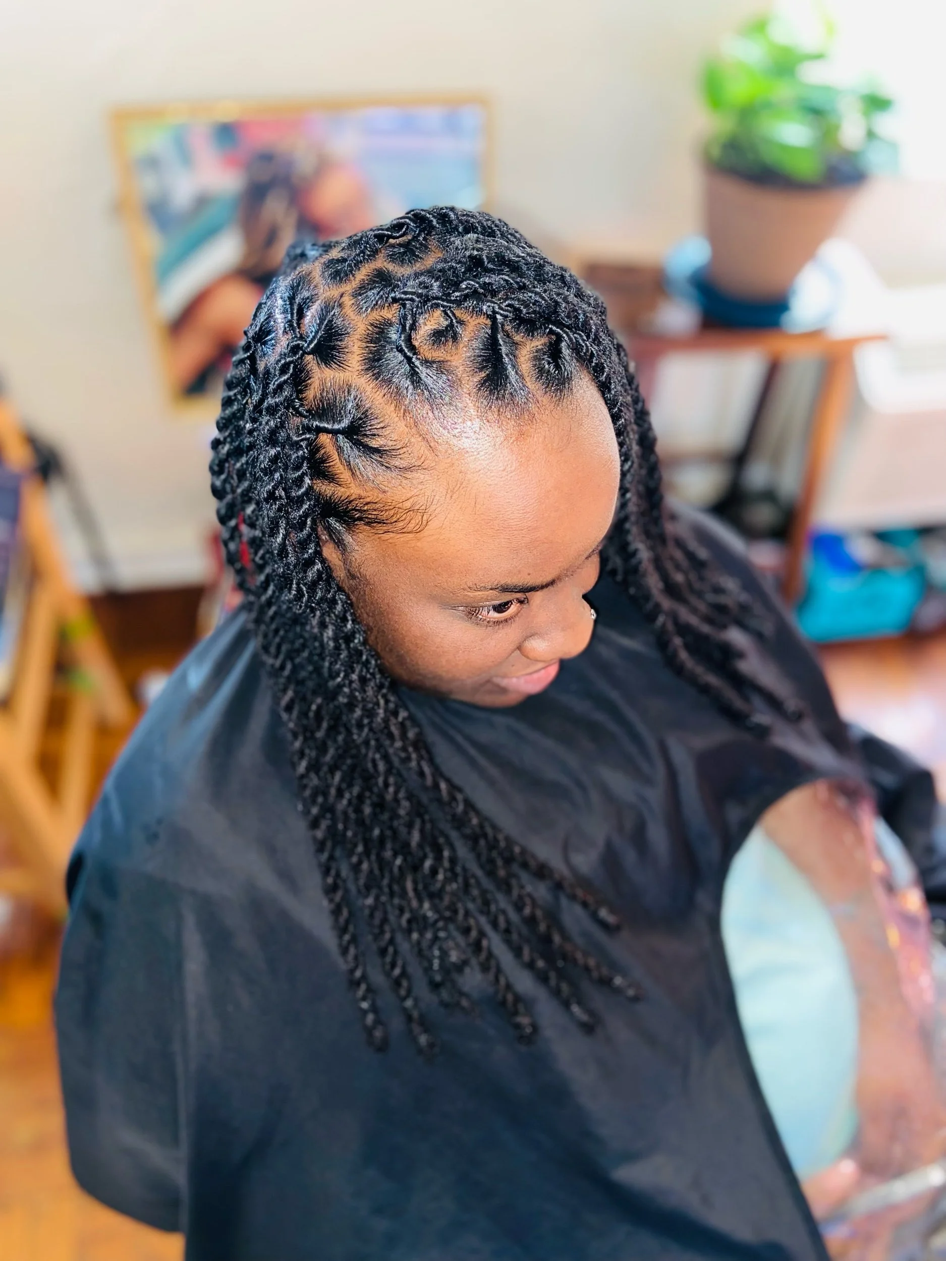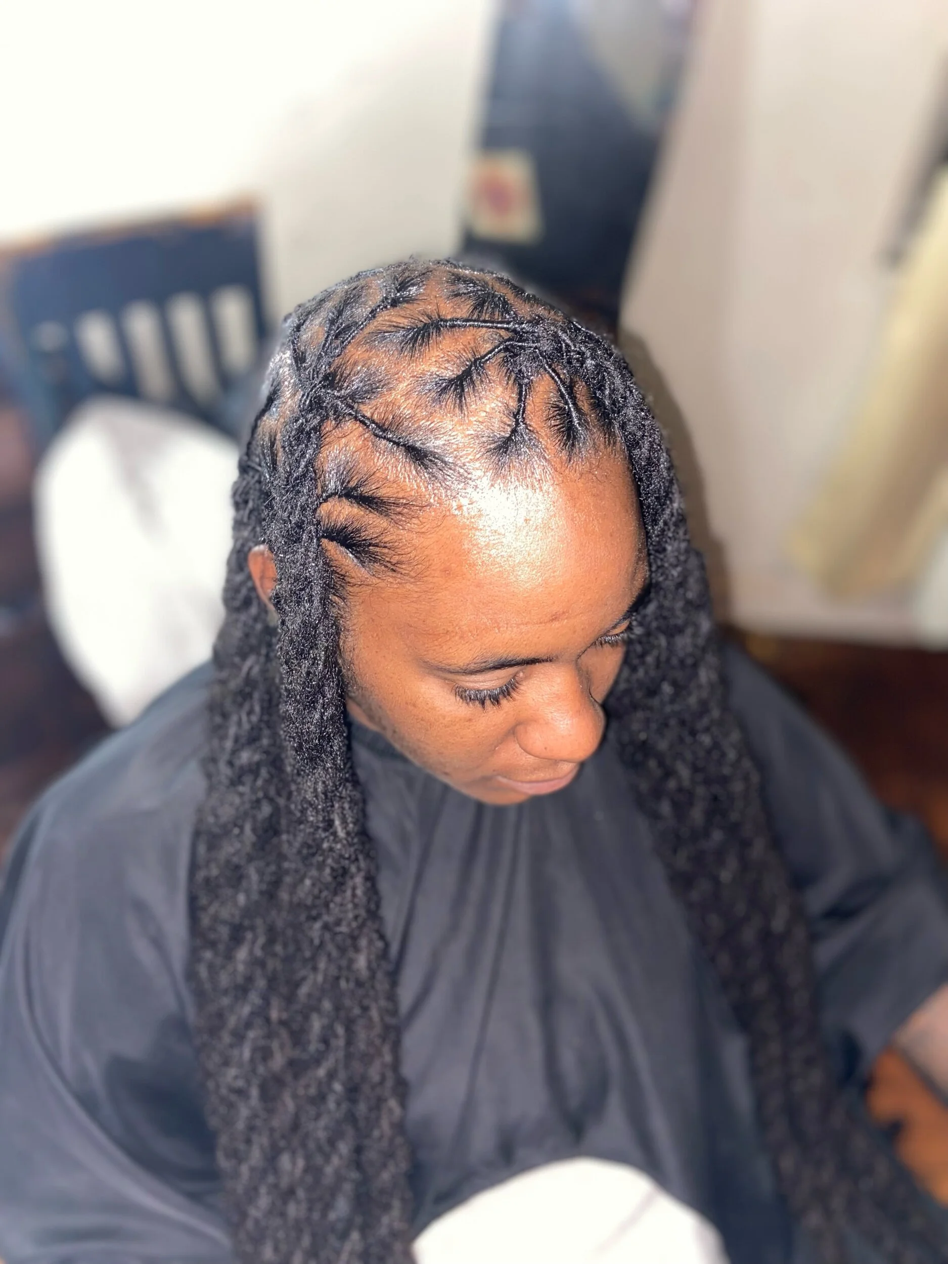 With this long lasting protective style for clients that need their hairstyle to last, I braided 6 locs together for a long lasting Re-Twist. Instead of the typical 3 Loc braiding method.