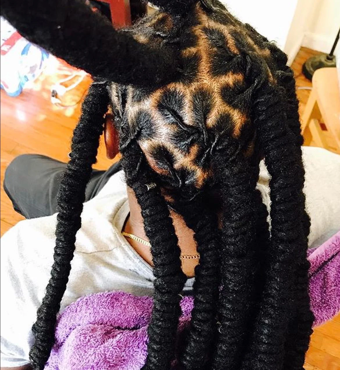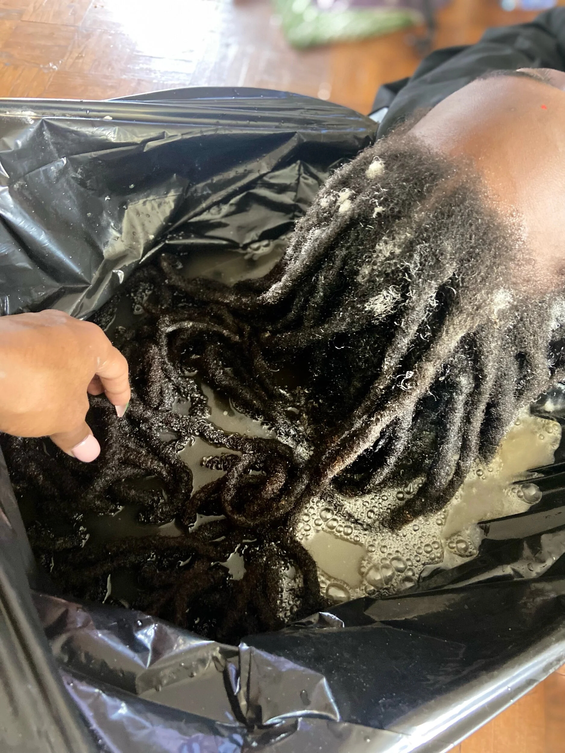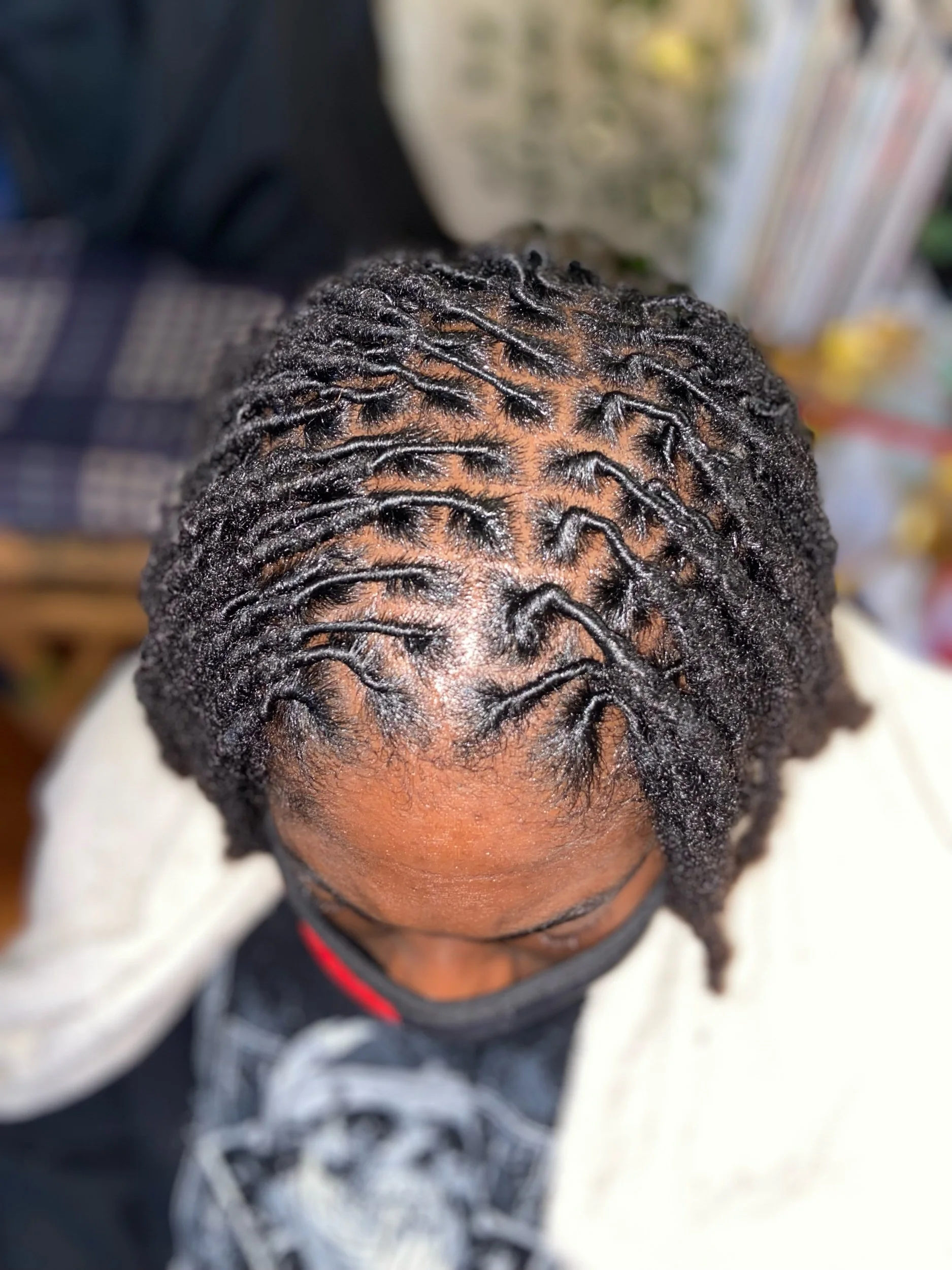 With this long lasting protective style for clients that need their hairstyle to last, I braided 6 locs together for a long lasting Re-Twist. Instead of the typical 3 Loc braiding method.